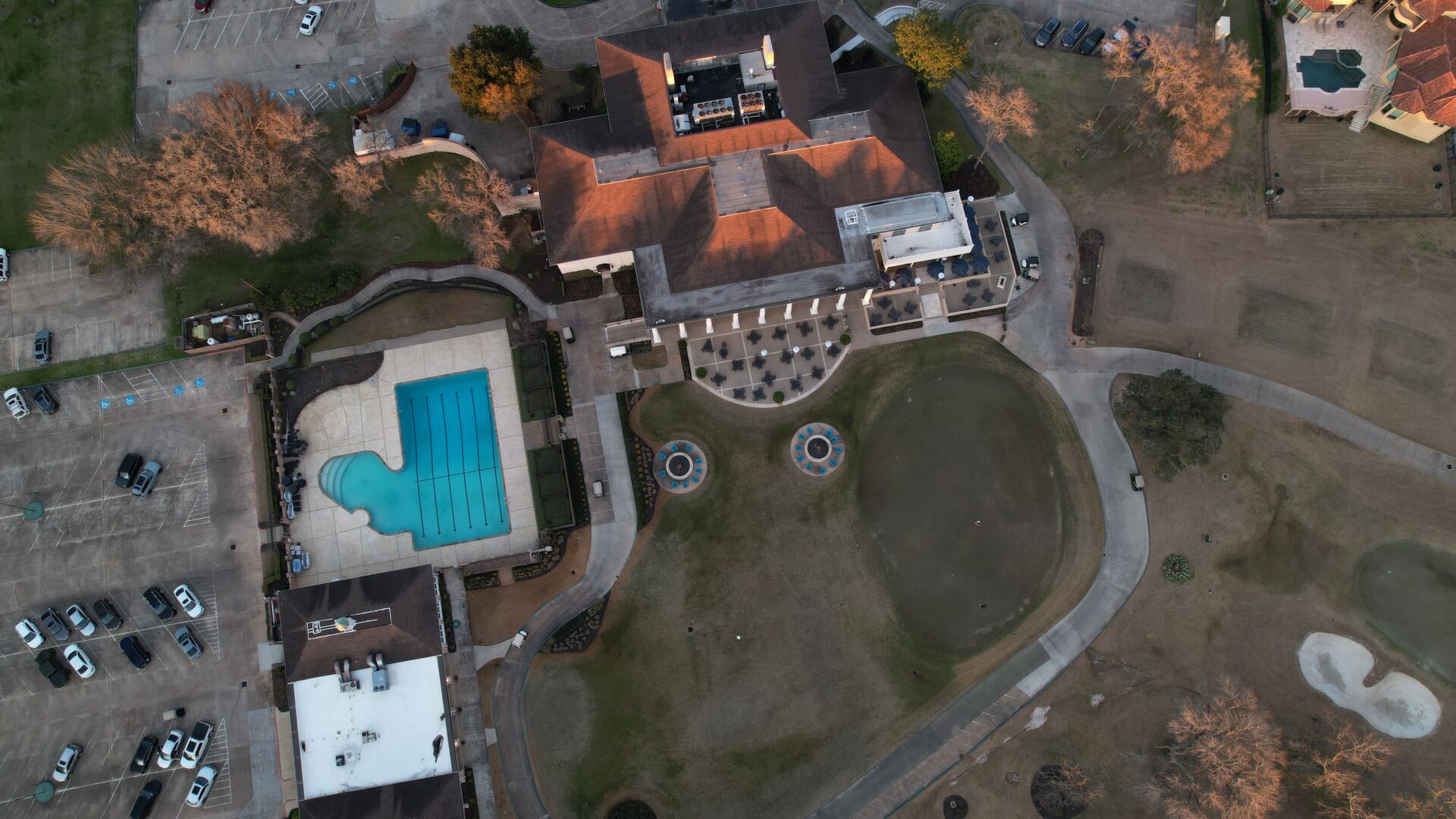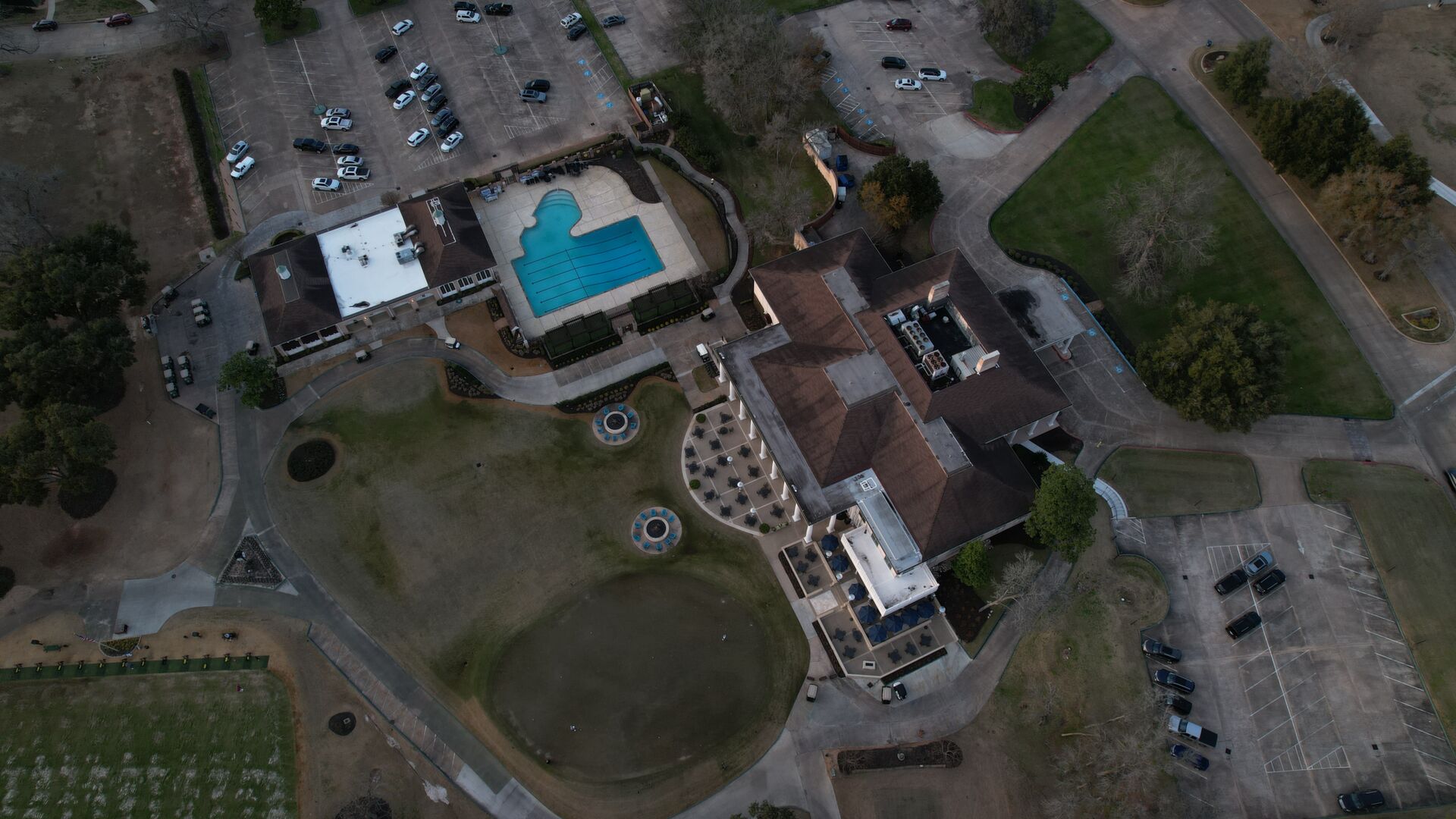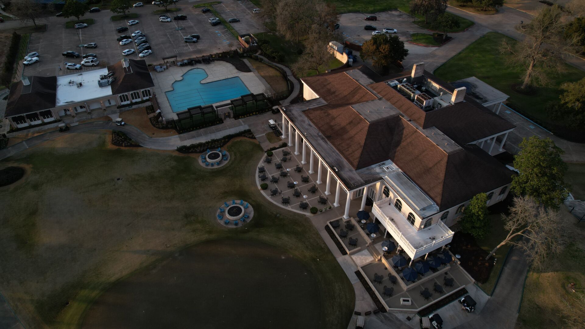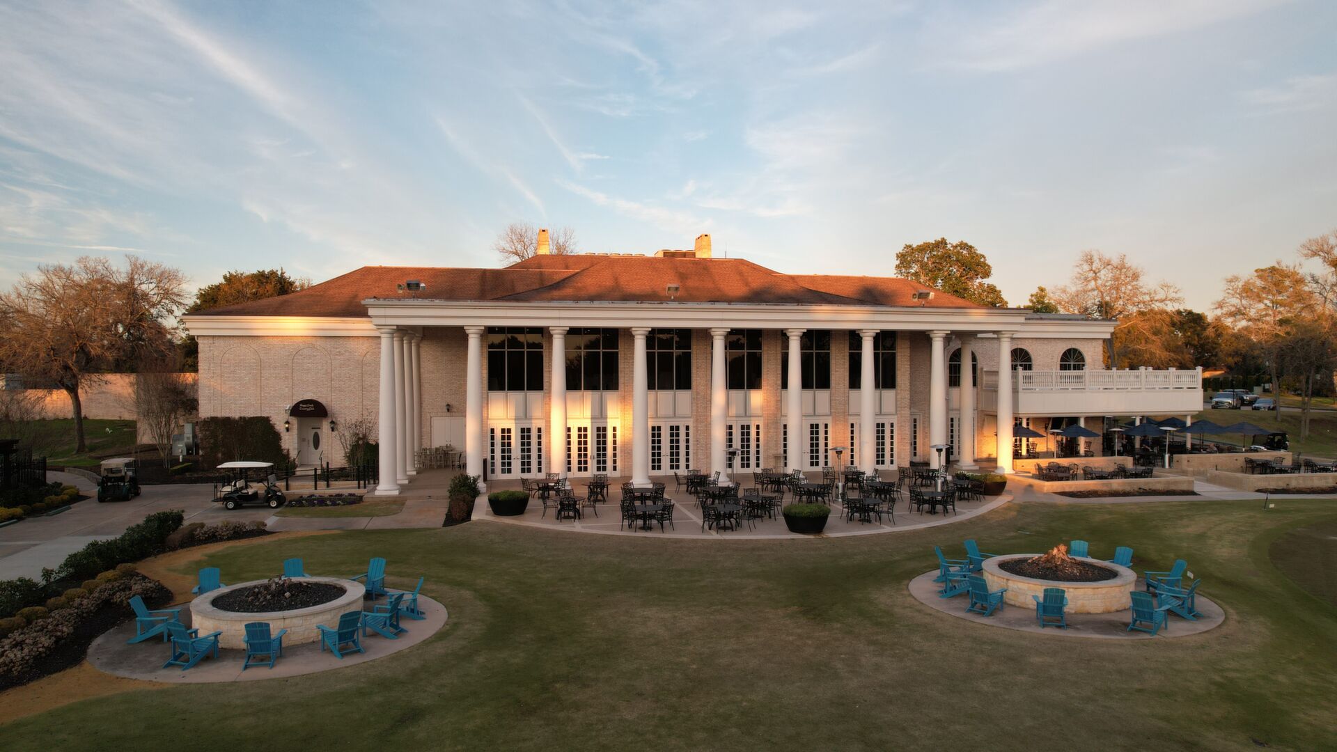 Aerials of Georgian-style Clubhouse